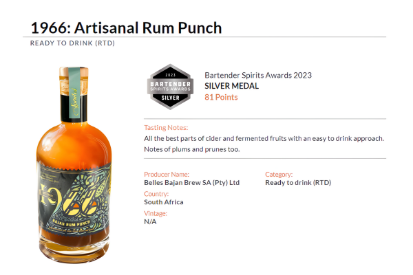 07/03/2024 Ajani Husbands' 1966 Artisanal Rum Punch, inspired by his bajan upbringing, won silver at the Bartender Spirits Awards 2023. Made with South African rum and a blend of spices and citrus, it honors Caribbean tradition with a touch of innovation.