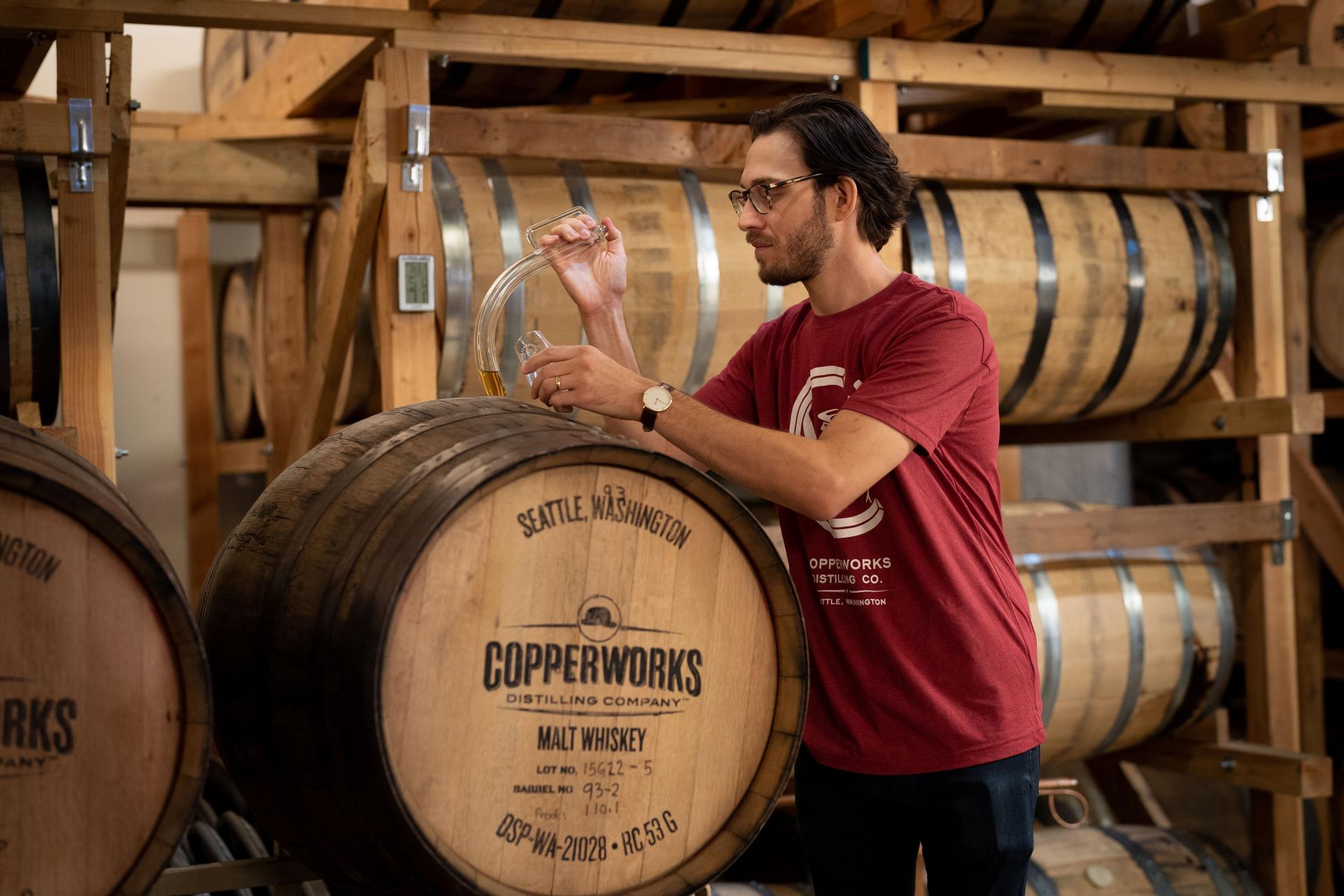 I chose law school because it felt like a respected and lucrative career choice. I was on a successful path working at a large law firm in NY, but I didn’t love my job. I kept seeing examples in the media of people that pursued their dreams in their 50s and 60s, and I thought, why not try to get into something I love now instead of waiting until my career is almost over? That caused me to make the move out to Seattle in 2012 (somewhere that was much more affordable than New York at the time…not so much anymore) and start pursuing a career in food and drink. I’ve always been drawn to food and drink, in part because my family tries to travel quite a bit and I always found one of the most interesting parts of travel is exploring food and beverage culture in other states and countries. My dad was also interested in craft beer in its early days, which I found fun and intriguing. I remember many trips to esoteric beer stores with him as a kid, which caused me to seek out better beer than most of my friends when I was in my early twenties. When I arrived in Seattle, I quickly learned the craft distilling scene was booming in Washington state and was lucky enough to meet Skip Tognetti, the founder of Letterpress Distilling in Seattle. He was kind enough to allow me to help him launch his distillery and was instrumental to me getting my gig at Copperworks. When I started at Copperworks, the idea was to help Jason and Micah (Copperworks’ Co-Founders) launch the tasting room and retail store. That quickly evolved into a much larger role, and I became a co-owner in the business.