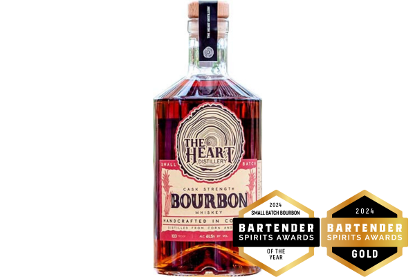 3. Cask Strength Bourbon from The Heart Distillery, Gold Medal: Cherries, vanilla, and chocolate with a bit of mint on the nose. Sweet, hot rye aftertaste of lingering lemon.
